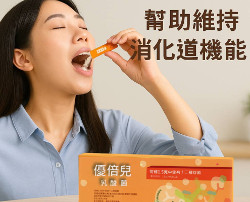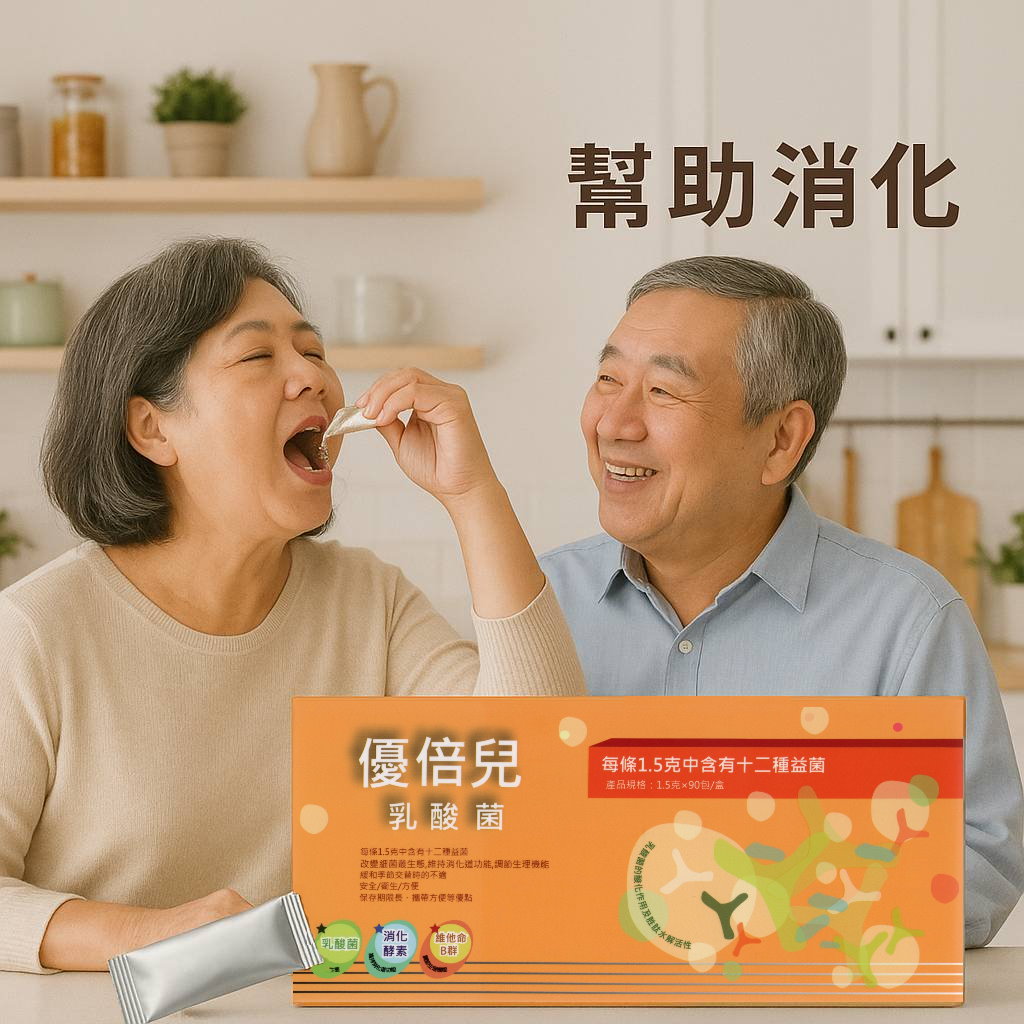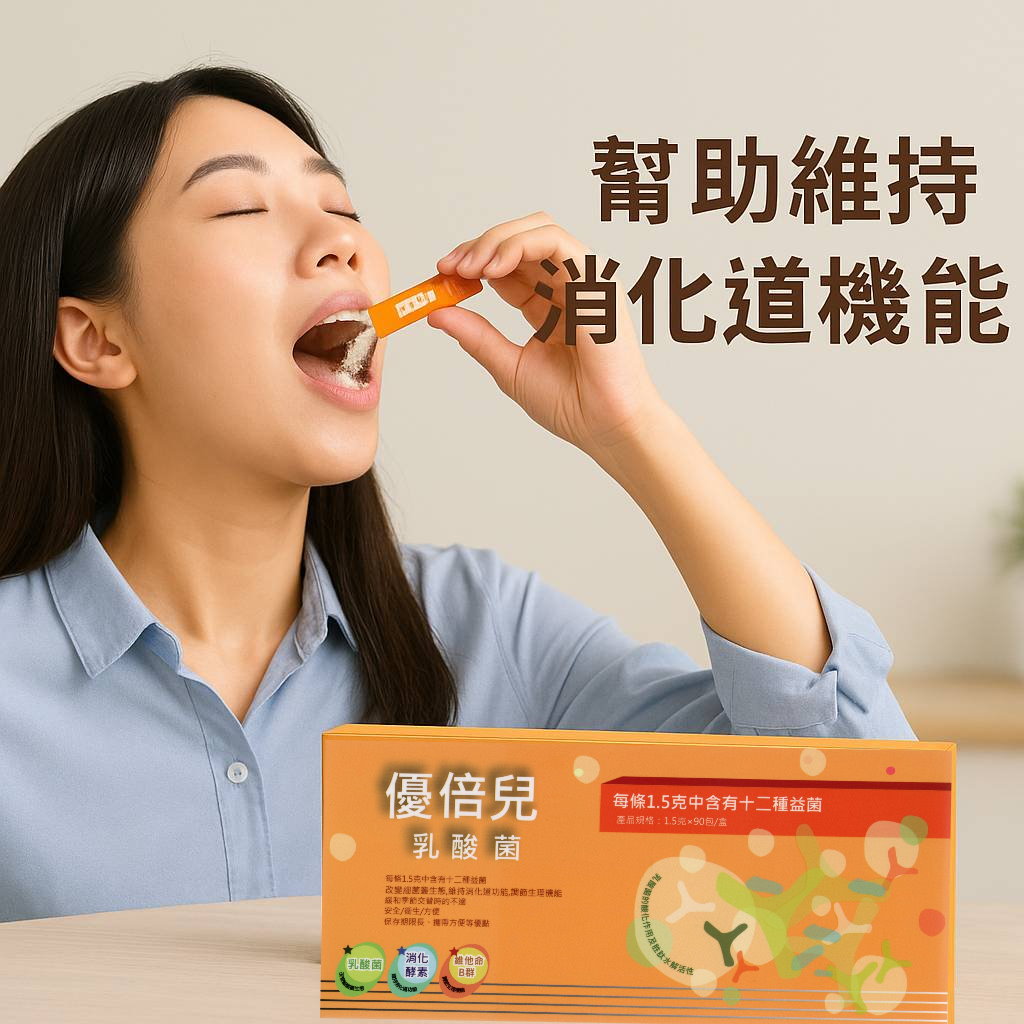 除了十二大益菌,同時添加消化酵素和維他命B群,可幫助消化、增強體力。