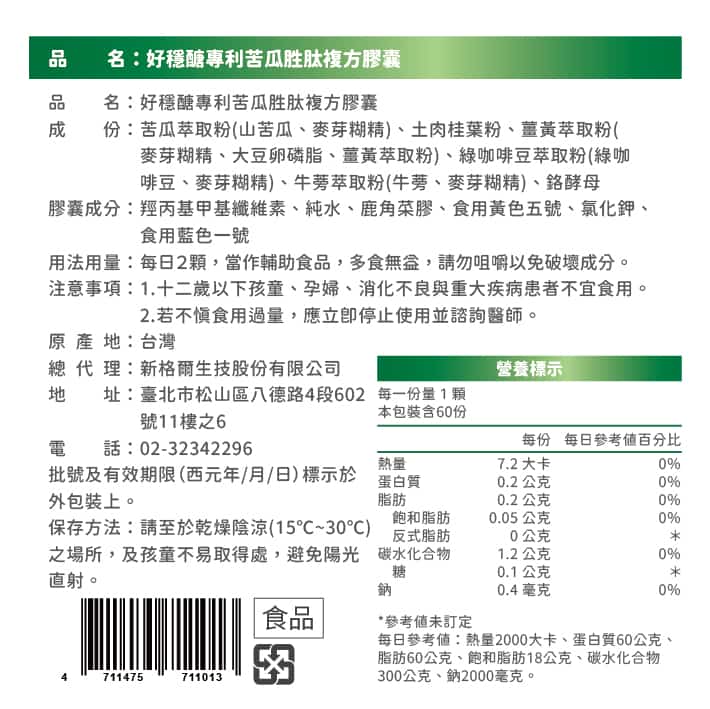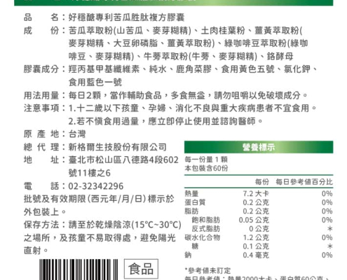多點好穩醣專利苦瓜胜肽複方膠囊 60粒/盒