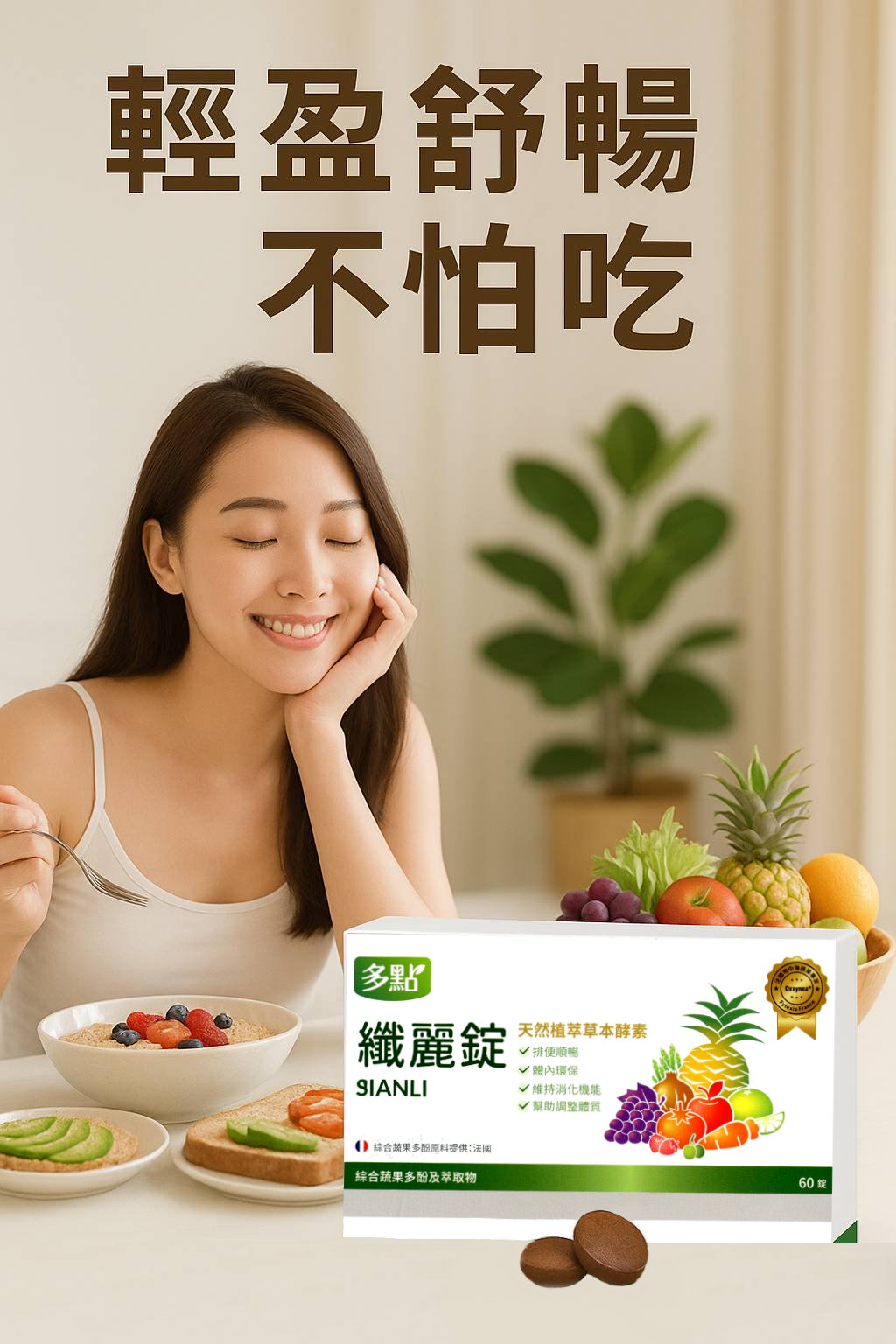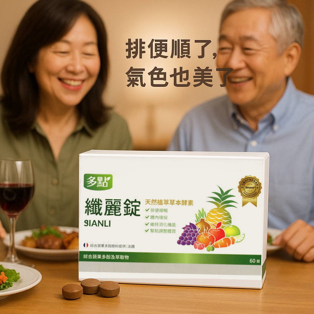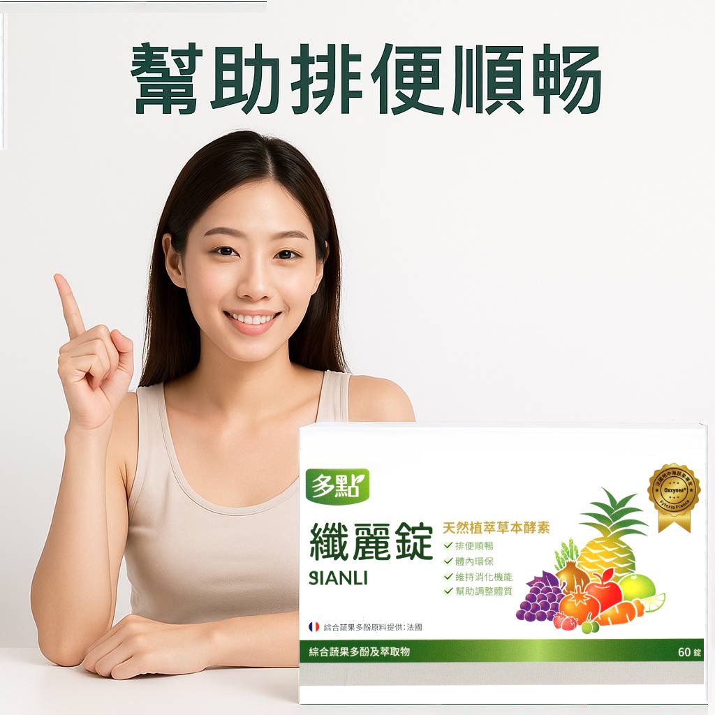 現代人飲食過度精緻化、外食比例高,蔬果攝取量不足,加上壓力、晚睡、生活作息不正常,腸道老化速度快,排便不順的情形越來越多,由法國Fytexia Natual廠提供原料製成的纖麗錠蔬果多酚可以幫助排便順暢,達到體內環保。