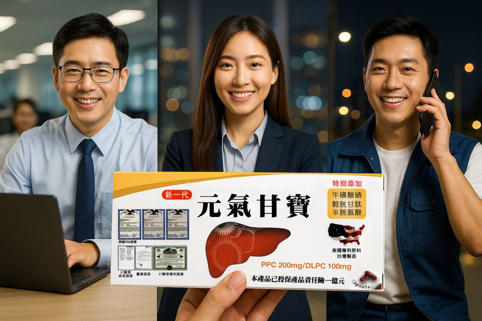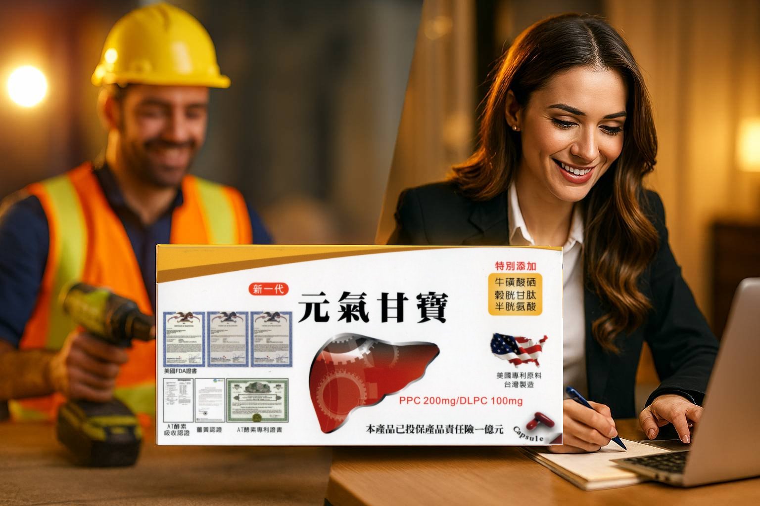 特別添加牛磺酸硒、榖胱甘肽、半胱氨酸,對晚睡熬夜、應酬喝酒、長期處於高污染環境工作者,或是經常勞心勞力而常感疲倦厭怠者,新一代元氣甘寶是最佳的保健品。