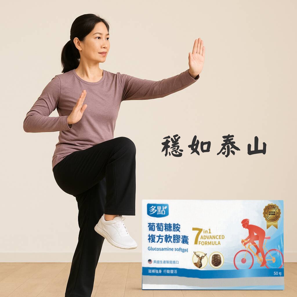 坐有坐相、想動就動,多點葡萄糖胺複方軟膠囊讓您上下樓梯、追趕跑跳碰都像年輕人那麼古溜古溜。