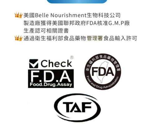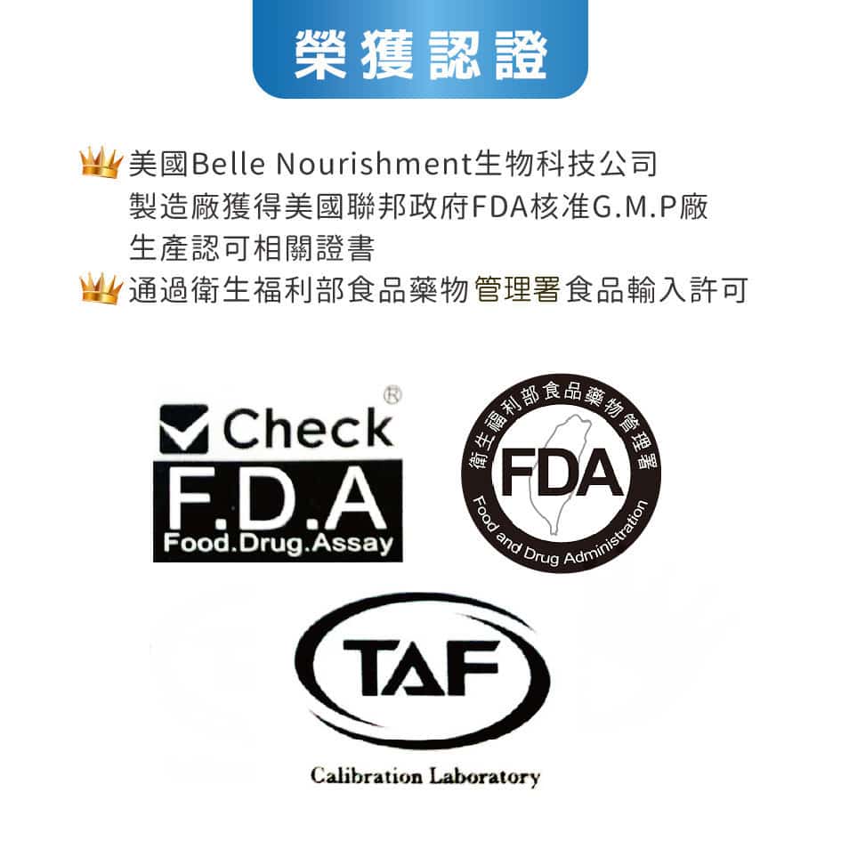 由美國聯邦政府FDA核准GMP廠的Belle Nourishment生物科技公司所研發生產製造。